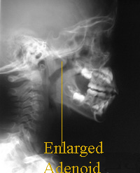 Investigations: Xray skull lateral view will show clearly the enlarged adenoid tissue causing narrowing of the naso pharyngeal airway.