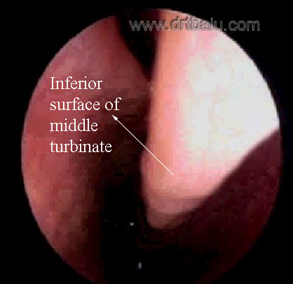 Endoscopic view of middle meatus