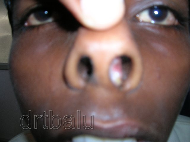 Septal deviation in new born is associated with asymmetry of the nostrils, an oblique columella and tip which points in the direction which is opposite to the deviation. Most of these patients are diagnosed by the use of Gray's struts. These struts are 4mm wide and 2mm thick and after lubrication, are inserted into the nostrils and then gently pushed backwards along the floor of the nasal cavity, hugging the nasal septum. Normally these struts can be introduced for a distance of 4 - 5 cms, but in cases of septal deviation a frank obstruction is encountered, usually 1 - 2 cms from the nostril.