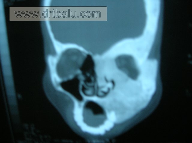 Coronal CT image of nose and sinuses showing fibrous dysplasia