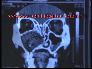 Coronal CT scan showing fungal sinusitis of right maxillary sinus