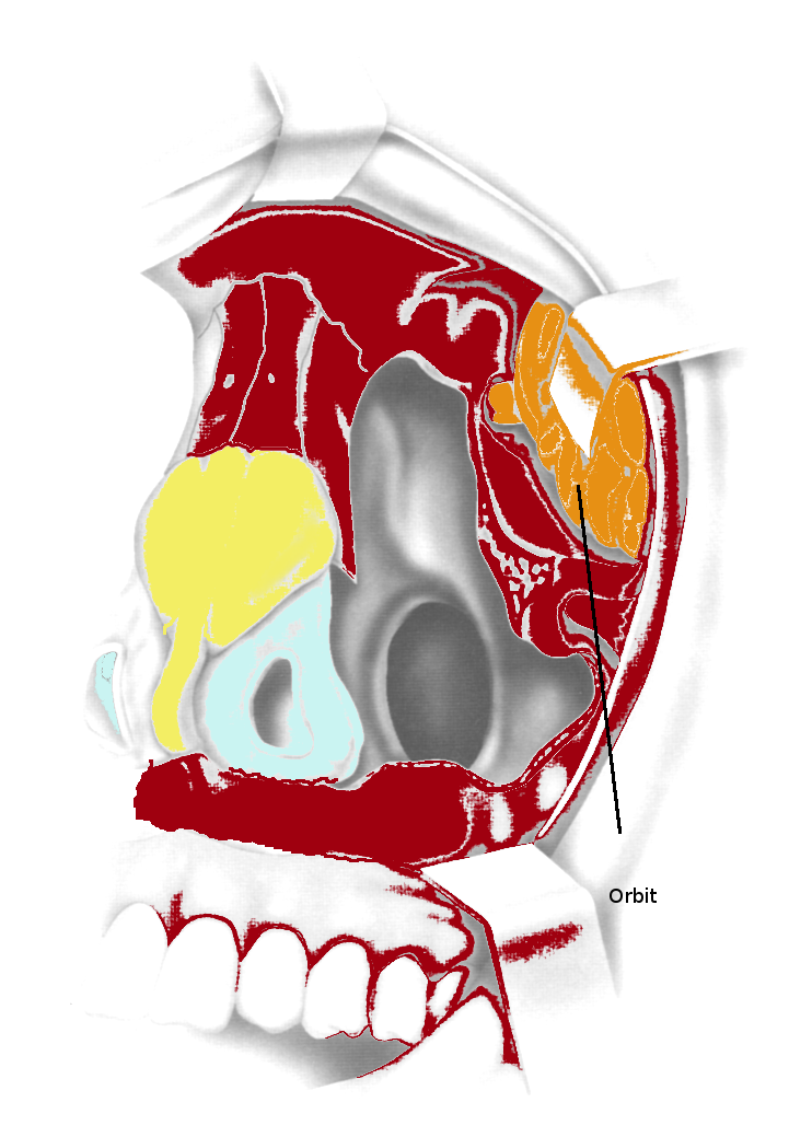 The whole anterior wall of maxillary sinus is drilled out including the lateral portion of nasal bone including the edge of the pyriform aperture.