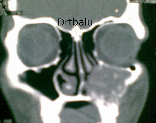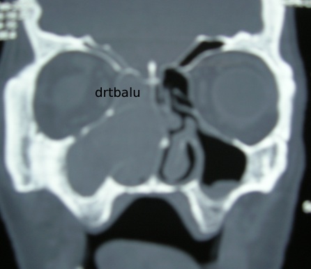 Coronal CT scan nose and sinuses showing fungal sinusitis of maxillary sinus