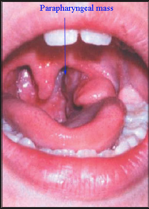 Signs and symptoms: of parapharyngeal mass depends on the tissue of origin and effect of the mass on surrounding structures.