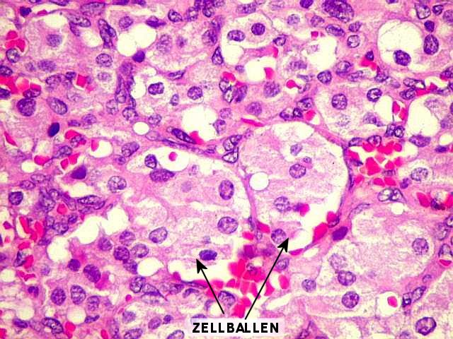Photomicrograph showing Zellballen arrangement of cells