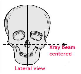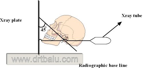 For this view the patient is made to sit with the sagittal plane parallel to the xray film and the radiographic base line is horizontal. The incident ray is horizontal and the incident beam is centered at the mid point of the antrum.