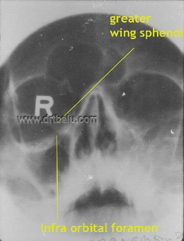 Occipito mental view: This is also known as the Water's view. This is the commonest view taken to study the paranasal sinuses. The patient is made to sit facing the