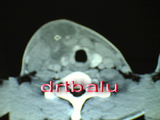CT scan neck showing cystic lesion in the anterior neck (thyroglossal cyst)
