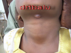 Clinical features: Thyroglossal cyst is the second commonest benign neck lesion next only to lymphadenopathy. Commonly it manifests as a cystic midline neck mass before the age of 5. The mass moves with deglutition and on protrusion of the tongue. Theoretically speaking the cyst could lie anywhere within the thyroglossal tract. These cysts may also be located laterally as well.