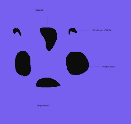 A ring of lympnoid tissue surround the naso pharynx and oro pharynx. These lymphoid tissue are collectively known as the waldayer's ring. Waldayer's ring has two components, namely the inner and outer rings. The cervical lymph nodes constitute the outer ring, while the inner ring is constituted by 1. adenoid at the roof of nasopharynx, 2. tubal tonsils or tonsil of Gerlac which surround the pharyngeal ends of eustachean tube. These lymphoid tissue surround the naso pharynx.
