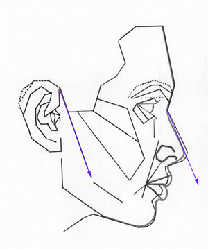 Diagram showing the angle of the ear running parallel to that of dorsum of the nose