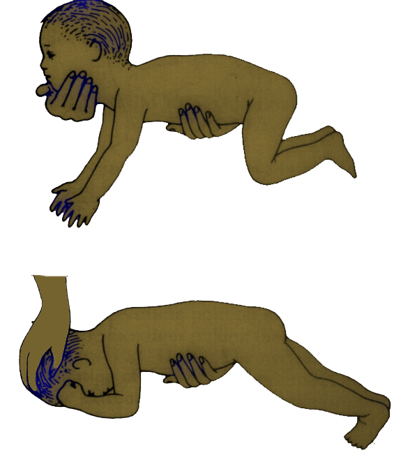 Figure showing neck righting reflex being performed
